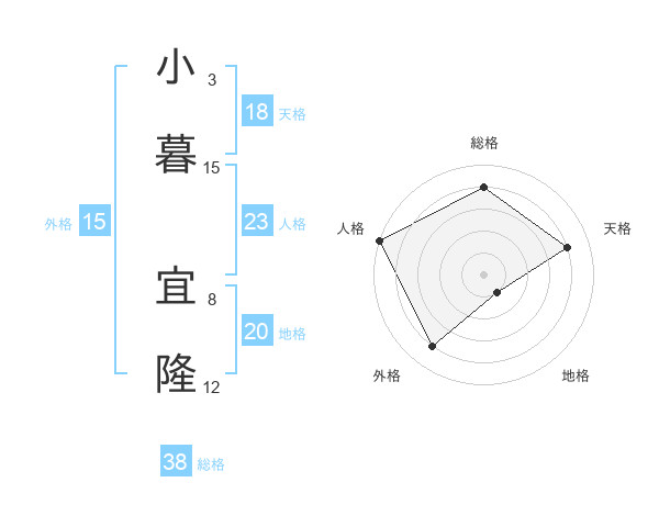 小暮 宜隆さんの総格は38画の4点!