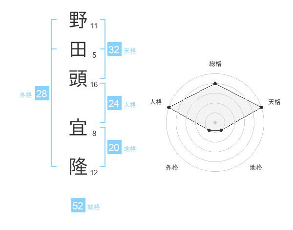 野田頭 宜隆さんを姓名の画数から五運を鑑定