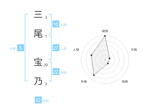 三尾 宝乃さんを姓名の画数から五運を鑑定