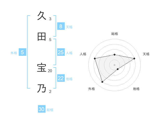久田 宝乃さんの総格は30画の2点