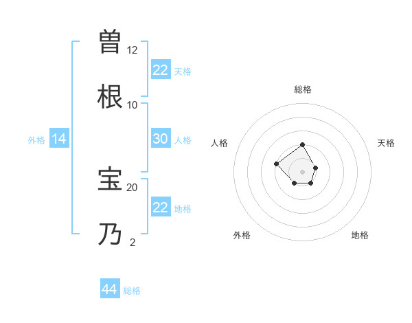曽根 宝乃さんの総格は44画の2点!