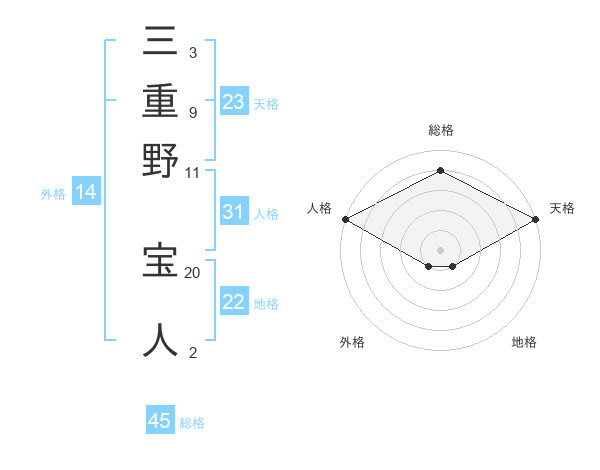 三重野 宝人さんの総格は45画の4点!