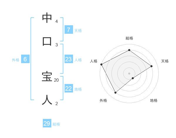 中口 宝人さんの総格は29画の4点!