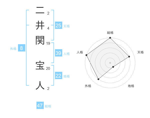 二井関 宝人さんを姓名の画数から五運を鑑定