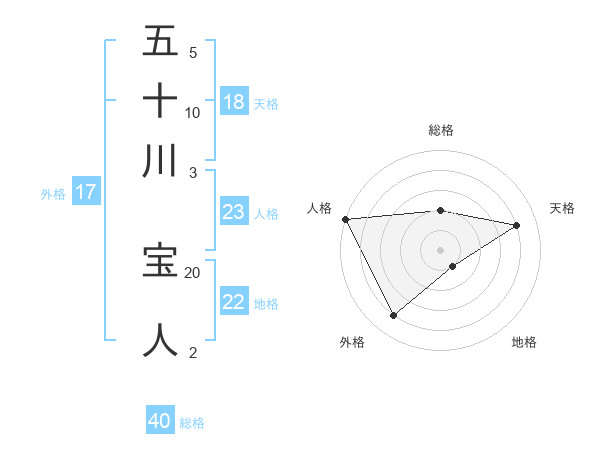 五十川 宝人さんの人格は23画の5点!