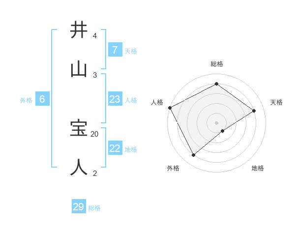 井山 宝人さんの総格は29画の4点!