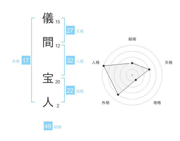 儀間 宝人さんの総格は49画の2点!