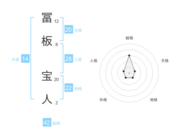 冨板 宝人さんを姓名の画数から五運を鑑定