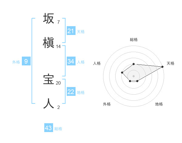 坂槇 宝人さんを姓名の画数から五運を鑑定