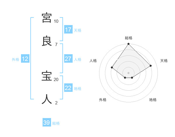 宮良 宝人さんの総格は39画の5点!