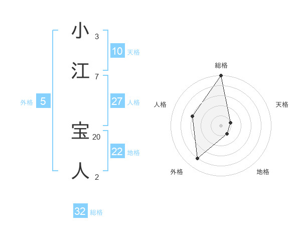 小江 宝人さんの総格は32画の5点!