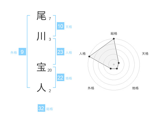 尾川 宝人さんの総格は32画の5点!