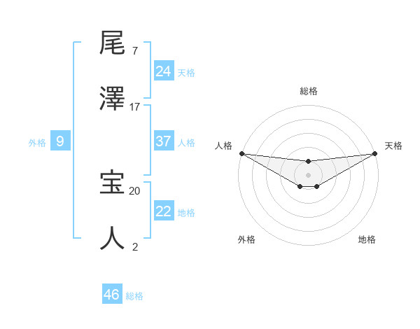 尾澤 宝人さんの天格は24画の5点!