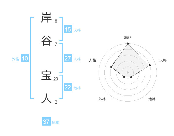 岸谷 宝人さんを姓名の画数から五運を鑑定