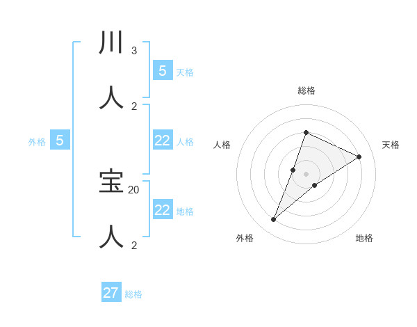 川人 宝人さんの総格は27画の3点!