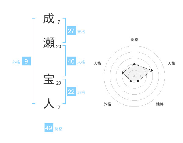 成瀬 宝人さんの総格は49画の2点!