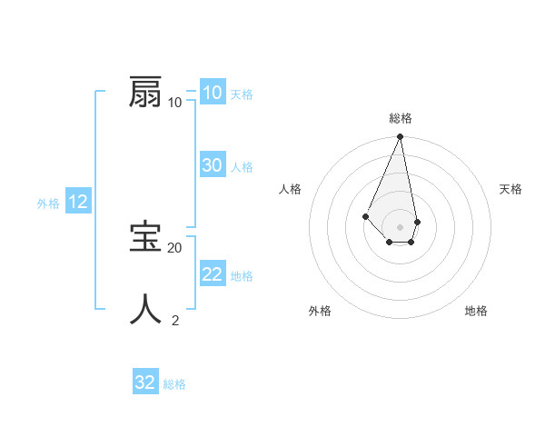扇 宝人さんの総格は32画の5点!
