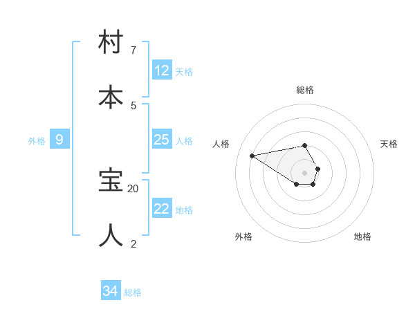 村本 宝人さんの総格は34画の2点!