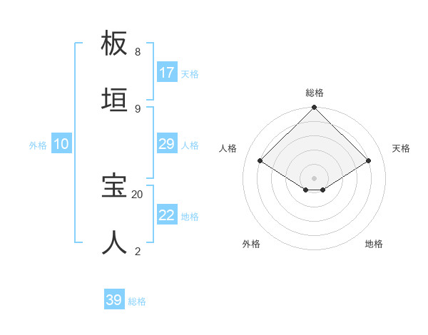 板垣 宝人さんを姓名の画数から五運を鑑定