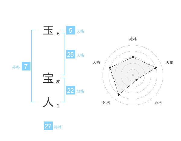 玉 宝人さんの総格は27画の3点!