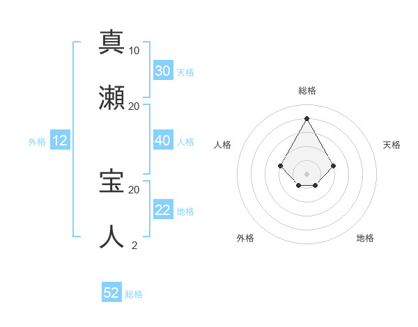 真瀬 宝人さんの総格は52画の4点!