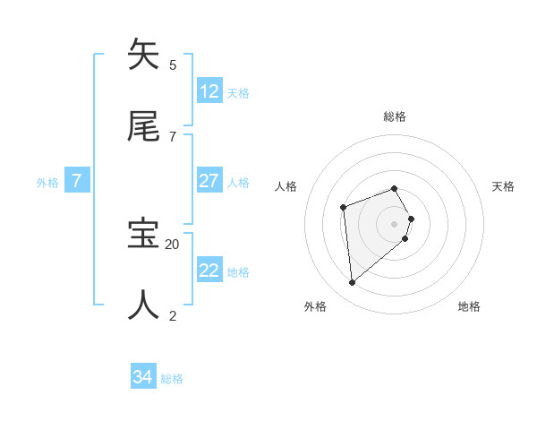 矢尾 宝人さんの総格は34画の2点!