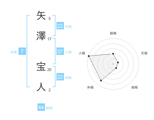 矢澤 宝人さんの天格は22画の1点!