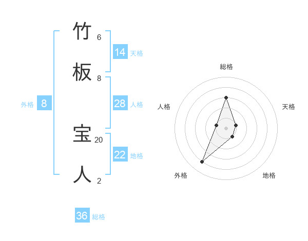 竹板 宝人さんを姓名の画数から五運を鑑定