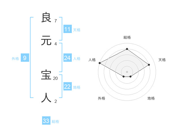 良元 宝人さんの総格は33画の4点!