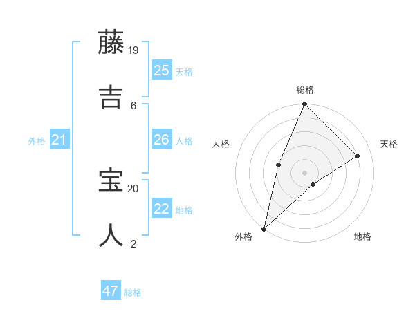 藤吉 宝人さんの総格は47画の5点!