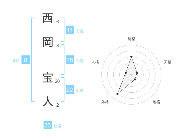 西岡 宝人さんを姓名の画数から五運を鑑定