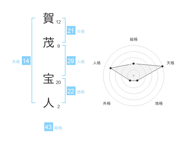 賀茂 宝人さんの天格は21画の5点!