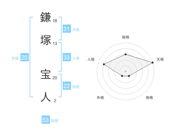 鎌塚 宝人さんの総格は53画の3点!