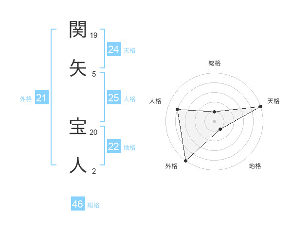関矢 宝人さんの天格は24画の5点!
