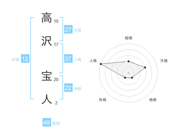 高沢 宝人さんの総格は49画の2点!