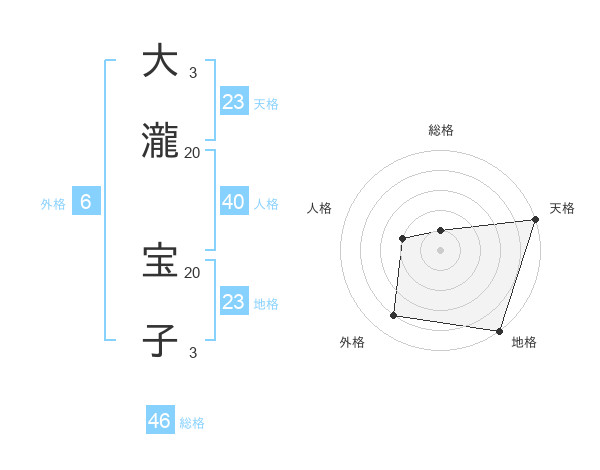 大瀧 宝子さんを姓名の画数から五運を鑑定