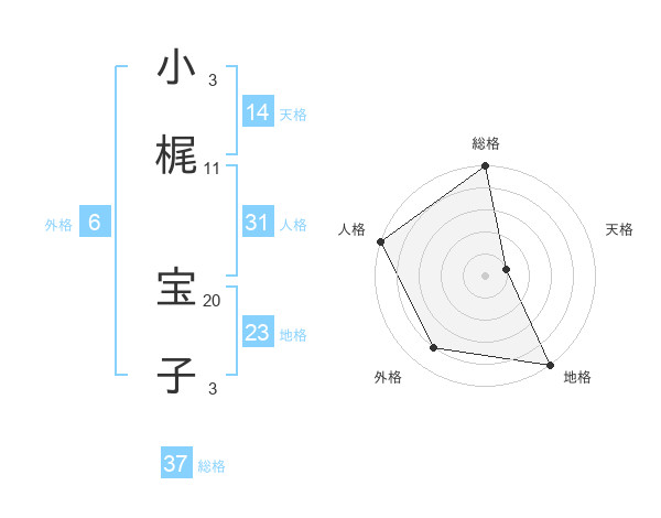 小梶 宝子さんを姓名の画数から五運を鑑定
