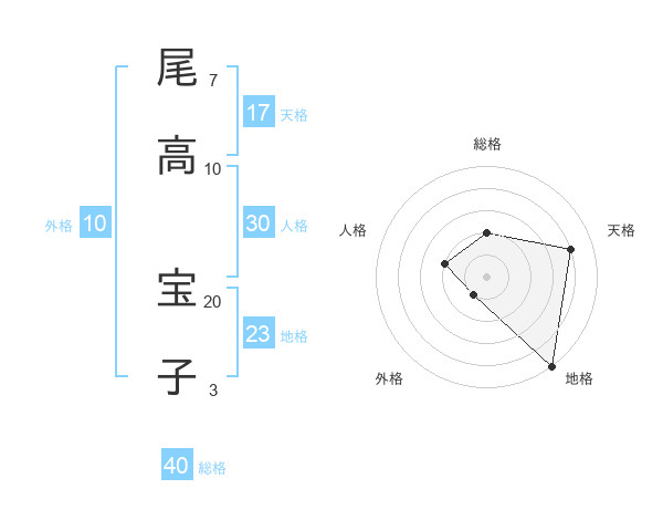 尾高 宝子さんの天格は17画の4点!