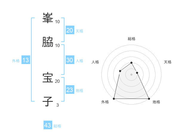 峯脇 宝子さんを姓名の画数から五運を鑑定