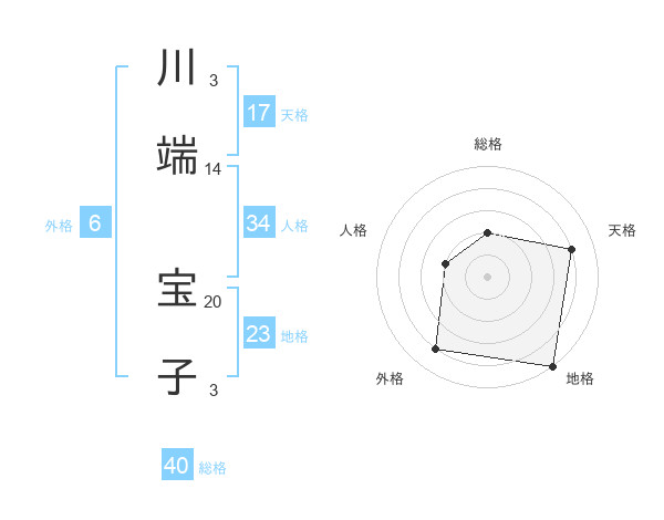 川端 宝子さんの天格は17画の4点!