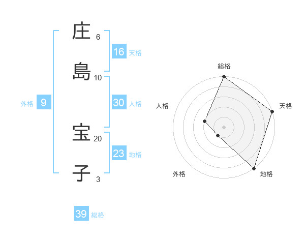 庄島 宝子さんの総格は39画の5点!