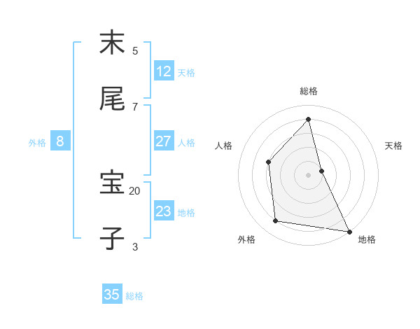 末尾 宝子さんを姓名の画数から五運を鑑定