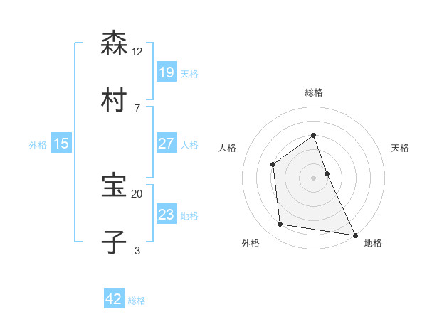 森村 宝子さんの総格は42画の3点!