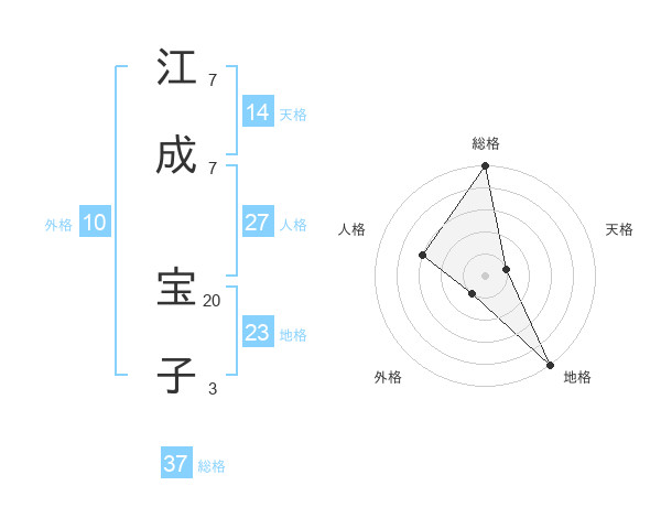 江成 宝子さんの総格は37画の5点!