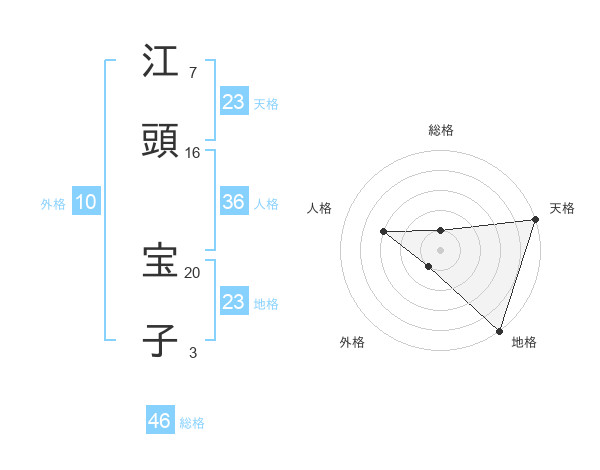 江頭 宝子さんを姓名の画数から五運を鑑定