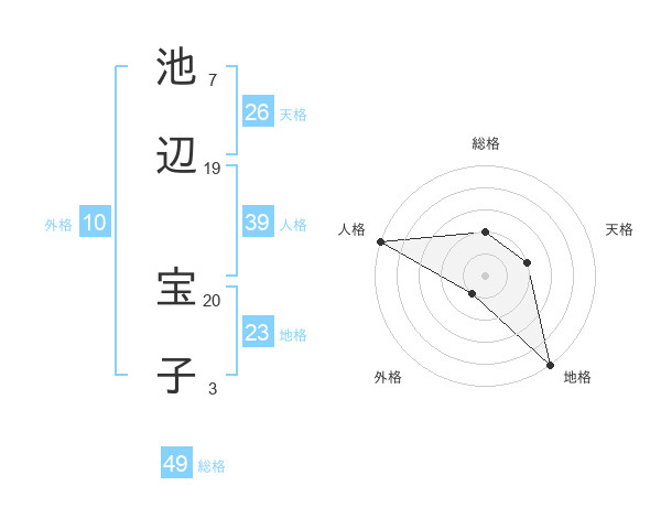 池辺 宝子さんを姓名の画数から五運を鑑定