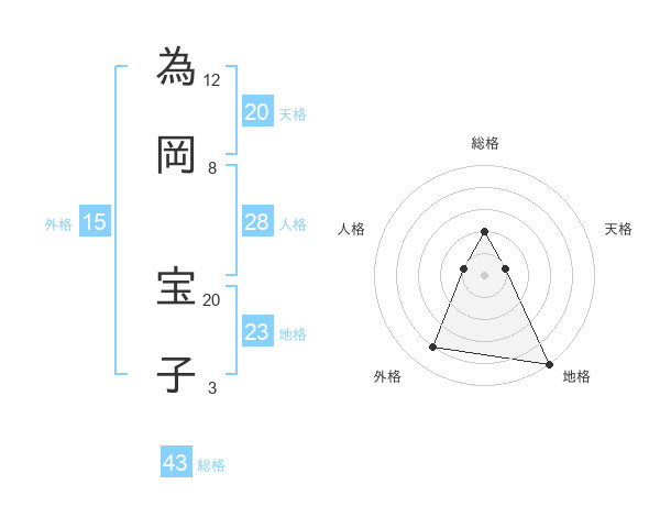 為岡 宝子さんの地格は23画の5点!