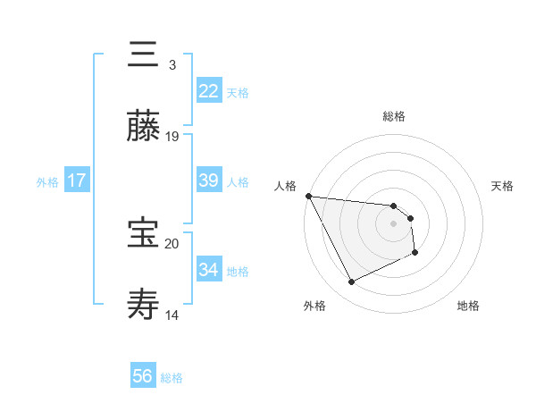 三藤 宝寿さんの天格は22画の1点!