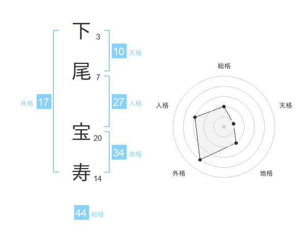 下尾 宝寿さんを姓名の画数から五運を鑑定