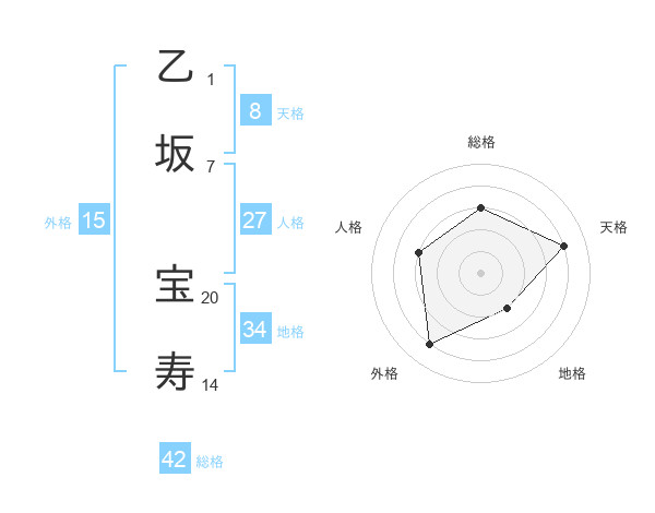 乙坂 宝寿さんの総格は42画の3点!